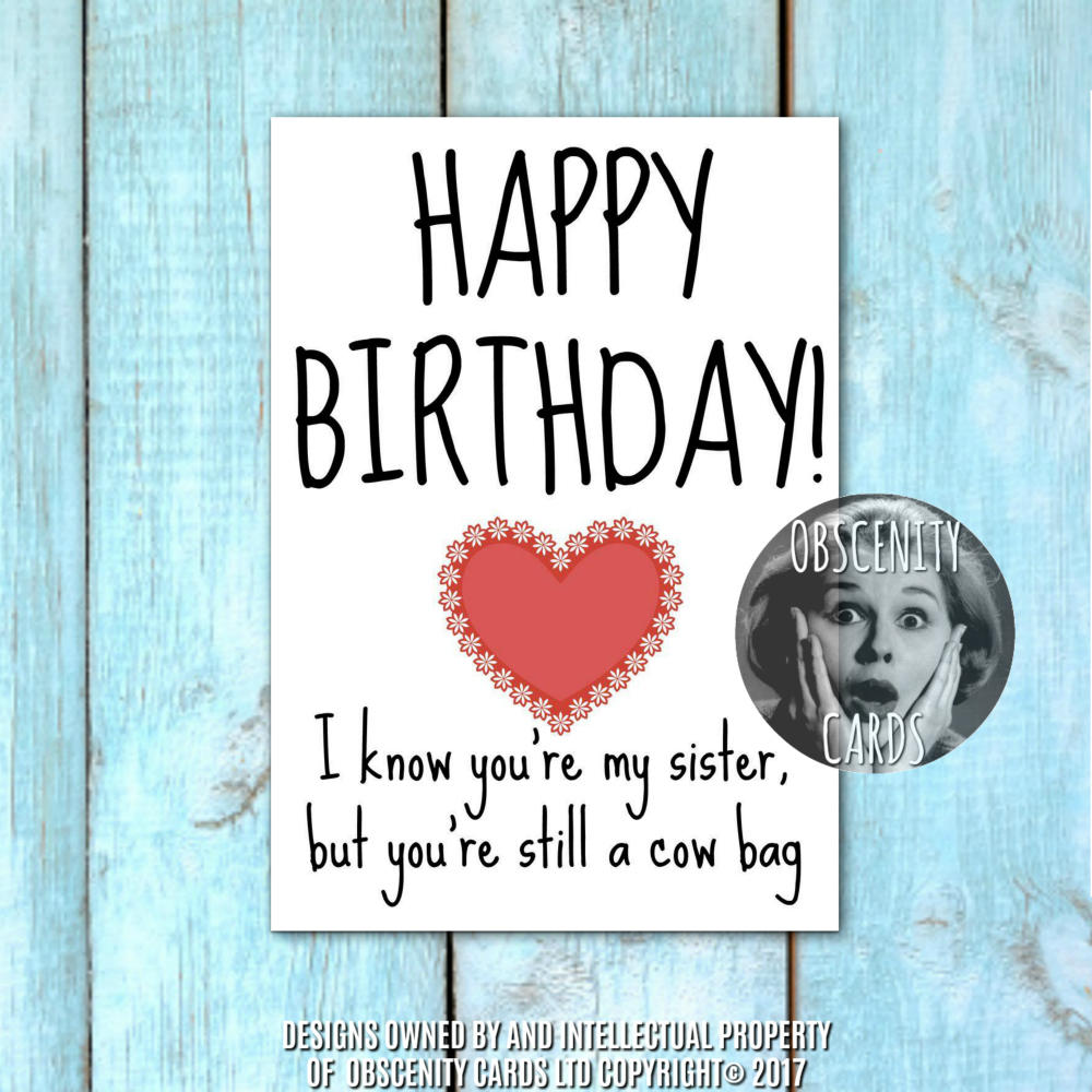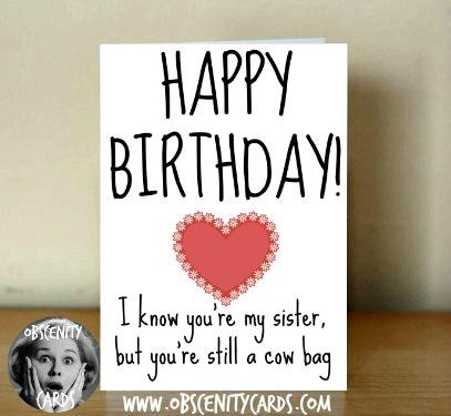 Happy Birthday sister Card – Still a cow bag
